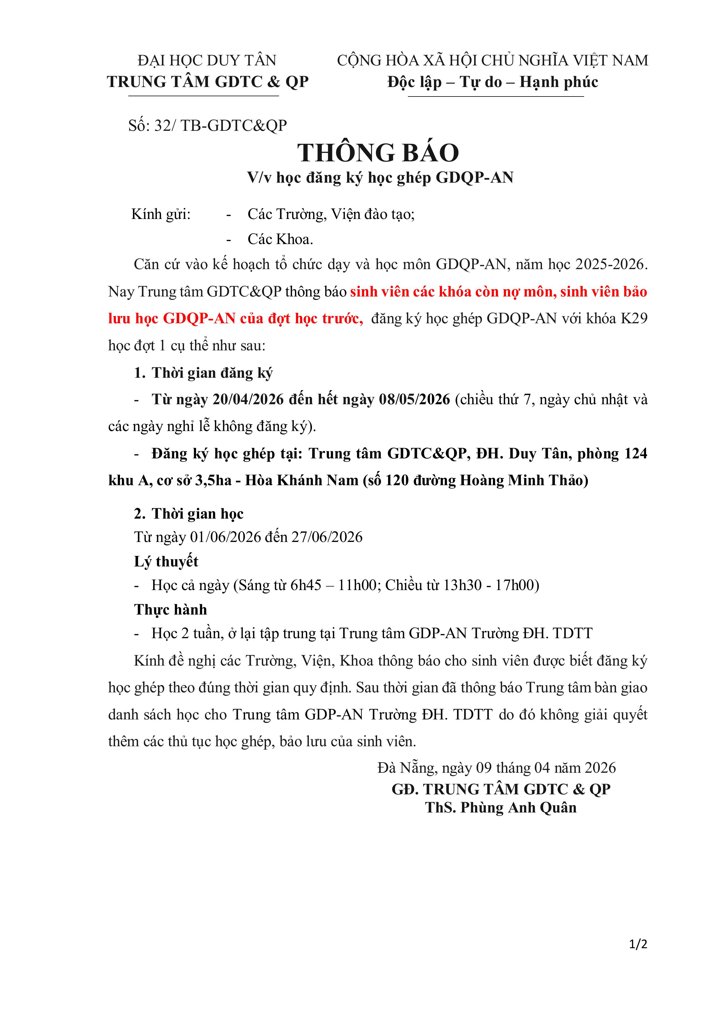 - Thông báo Lịch học GDQP-AN khóa K29 đợt 1 từ ngày 01_06 đến 21_06_2026
