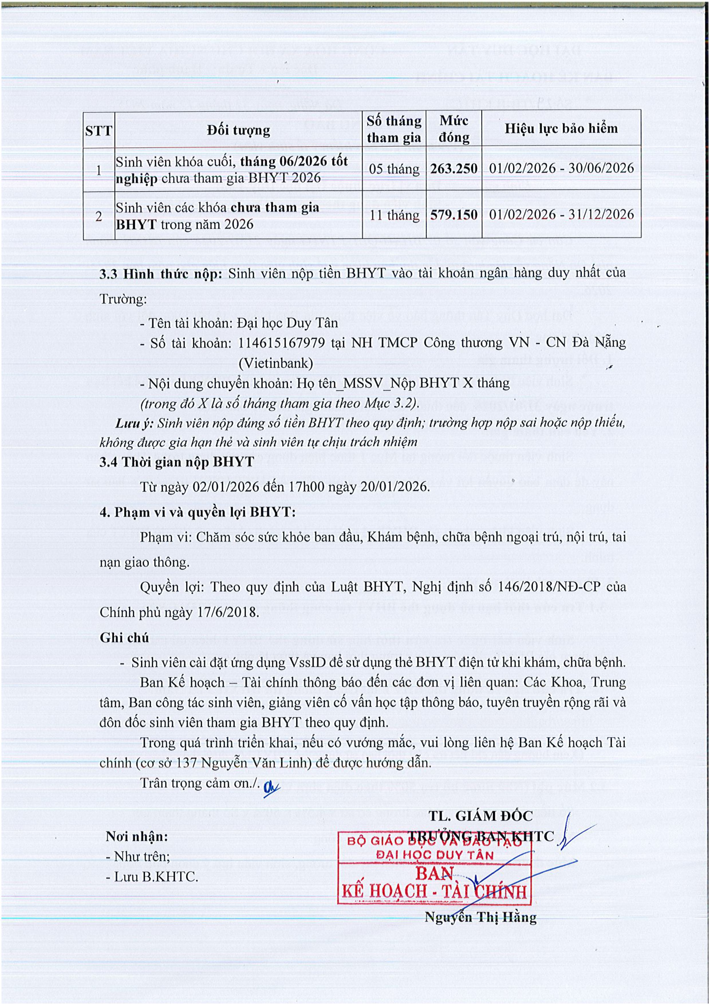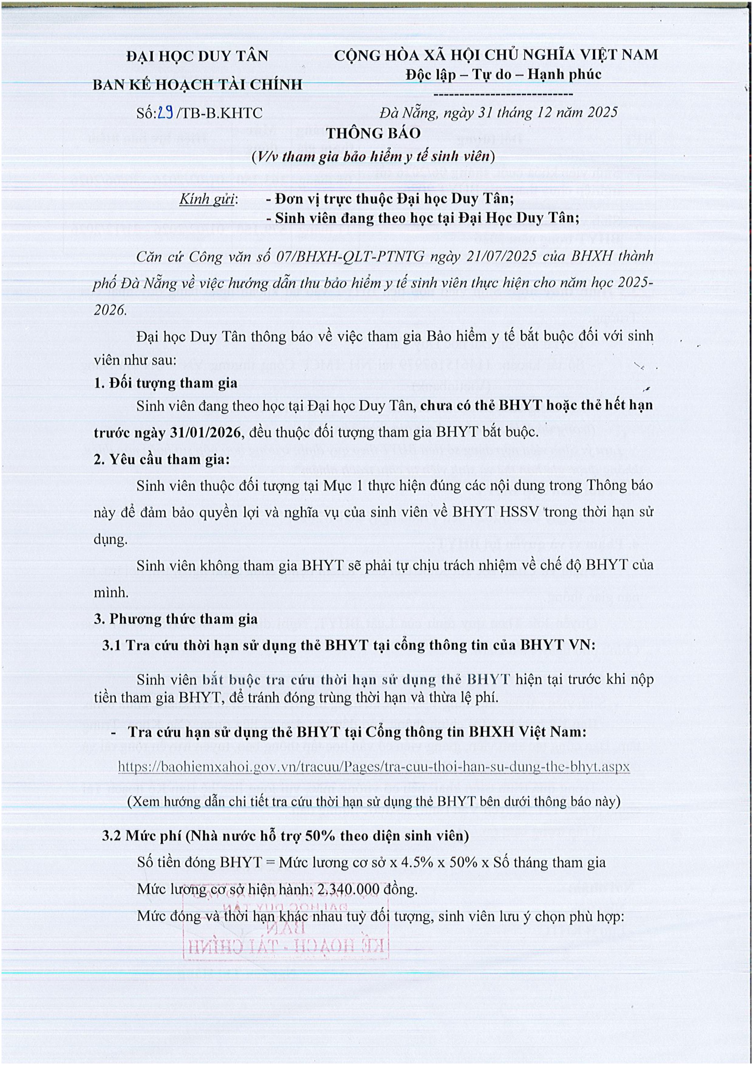 THÔNG BÁO VỀ VIỆC THAM GIA BẢO HIỂM Y TẾ SINH VIÊN