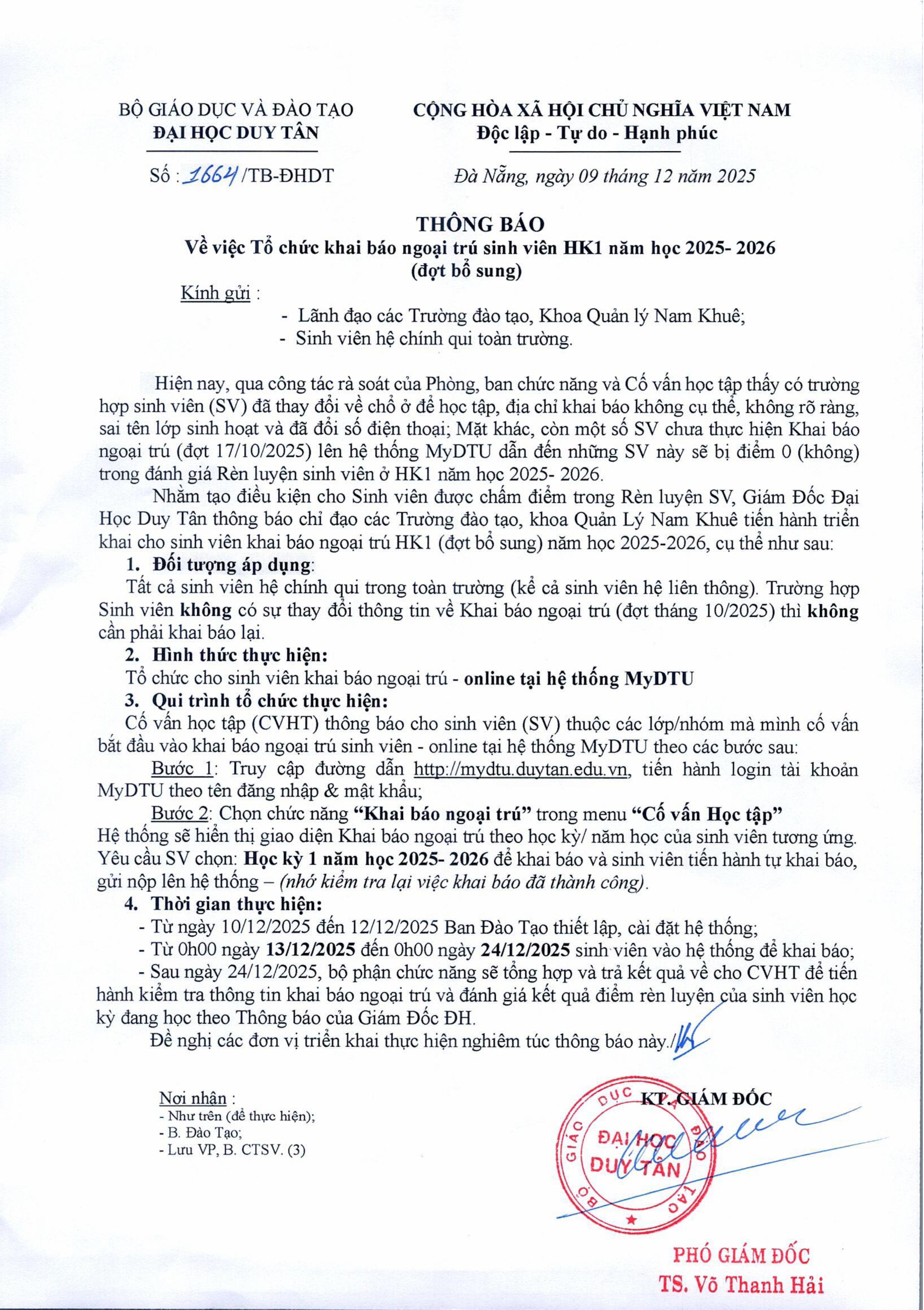 Thông báo Về việc Tổ chức khai báo ngoại trú sinh viên HK1 năm học 2025-2026 (Đợt bổ sung)