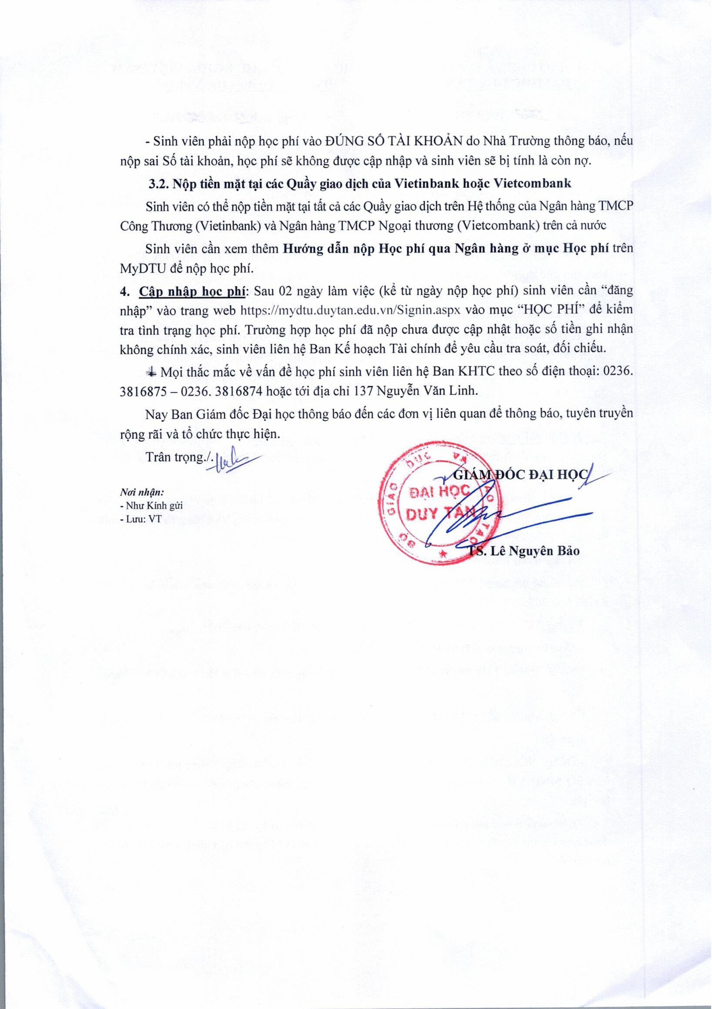 THÔNG BÁO V/v NỘP HỌC PHÍ HỌC KÌ 2 NĂM HỌC 2025-2026