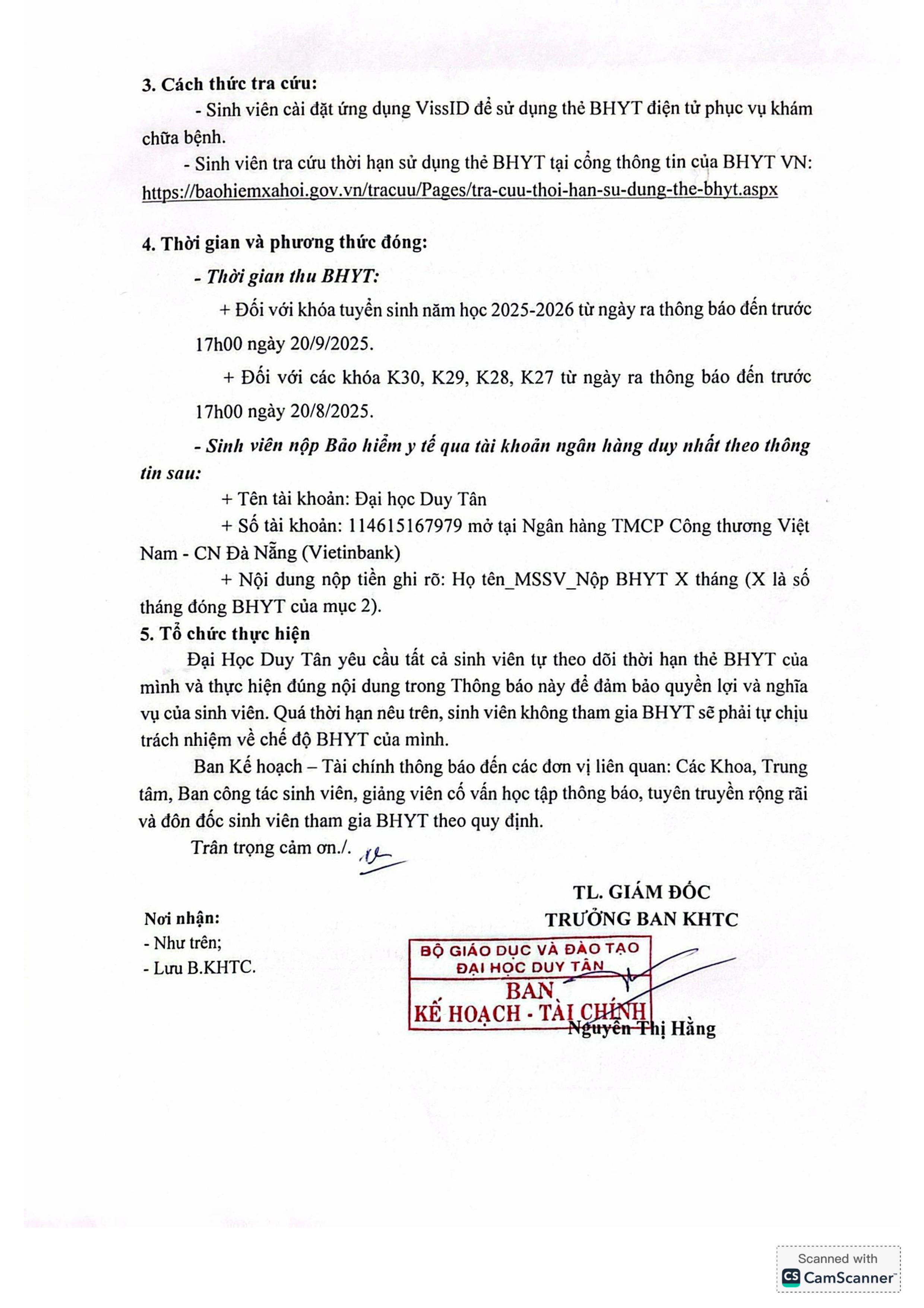 Thông báo V/v Thu nộp BHYT sinh viên từ 22/7/2025
