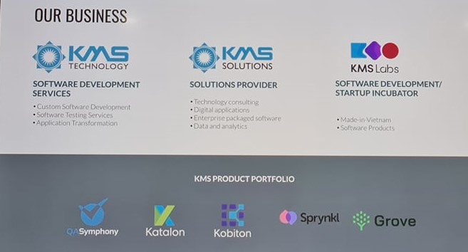 Thành lập năm 2009, KMS Technology là công ty hàng đầu chuyên cung cấp dịch vụ tư vấn và phát triển sản phẩm phần mềm cho thị trường Mỹ và quốc tế. Năm 2021, KMS tập trung cung cấp dịch vụ phần mềm trong lĩnh vực Chăm sóc sức khỏe và mở rộng kinh doanh tại khu vực Châu Á-Thái Bình Dương, thông qua các giải pháp hỗ trợ chuyển đổi số. KMS Technology đang mở rộng nguồn nhân lực tại khu vực miền trung với văn phòng đầu tiên tại Đà Nẵng.