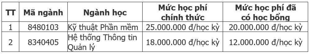 - Lệ phí xét tuyển: 1.500.000 đ/hồ sơ