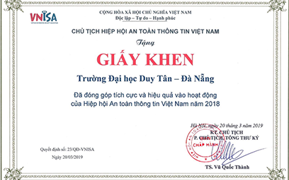 Hiệp hội An toàn Thông tin Việt Nam trao tặng Giấy khen cho ĐH Duy Tân